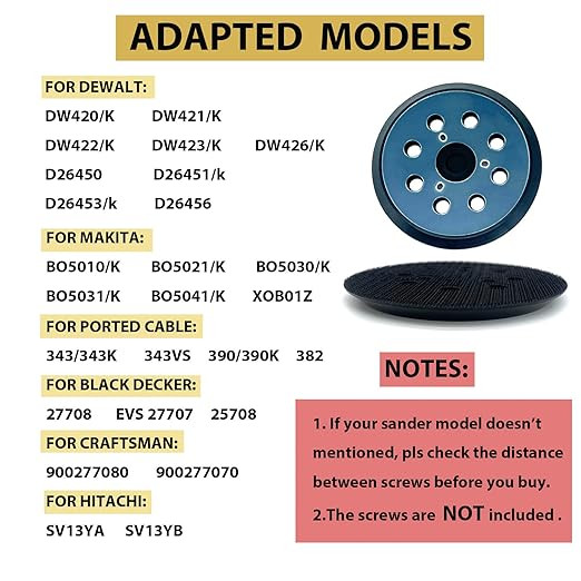 - 1.[ مدلهای سازگار]: این پد کاغذ سنباده جایگزین برای اکثر سنبادههای معمولی مداری با 3 سوراخ پیچ مناسب است، توجه: پیچها شامل نمیشوند.
