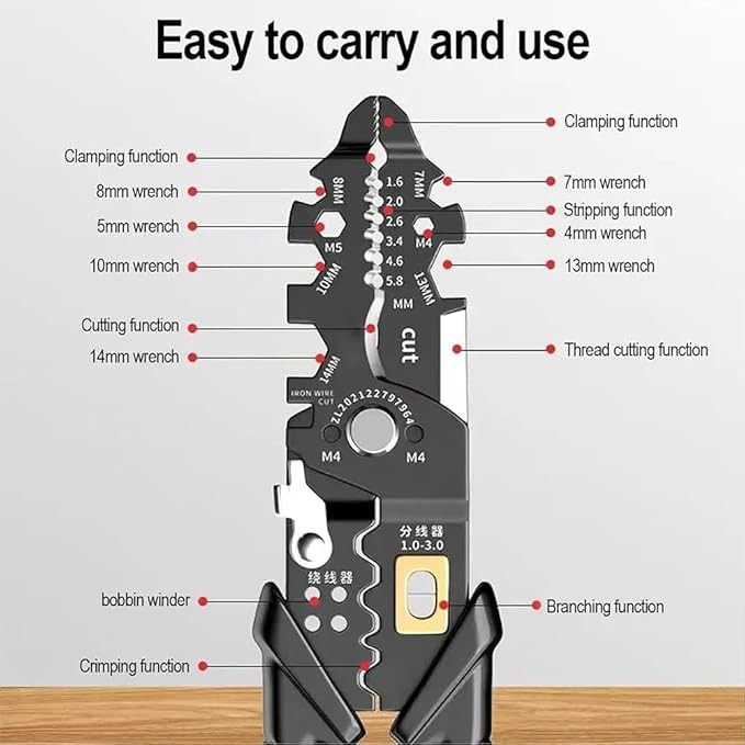 - 【کاربرد گسترده】 کاربرد گسترده آن را به ابزاری همه کاره برای تمام نیازهای الکتریکی شما تبدیل می کند. ایده آل برای مصارف صنعتی، برقی و خانگی. برای جدا کردن، برش و عایق بندی ترمینال سیم مسی، سیم آلومینیومی، سیم هسته روکش دار، کابل، سیم های چند غلاف، غلاف تسمه، ترمینال لخت مناسب است. کار برقکار خود را کارآمدتر کنید.