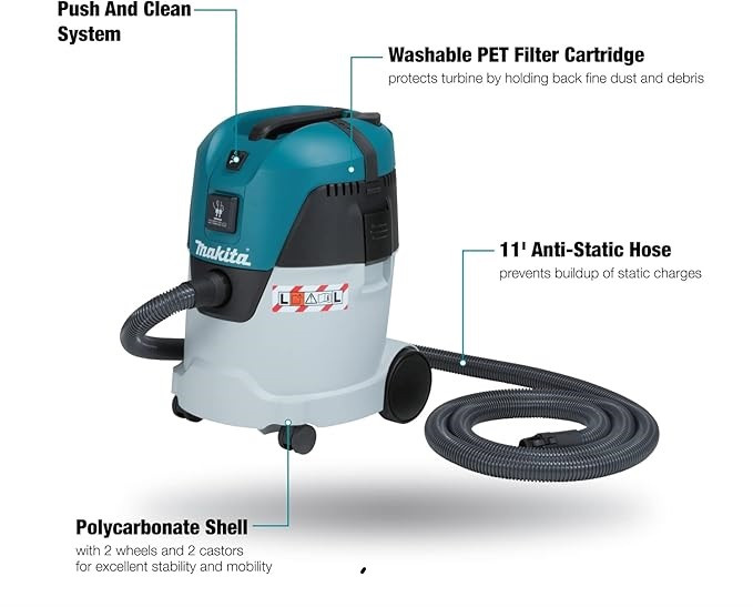 ماکیتا یکی از پیشروترین تولید کنندگان ابزارهای برقی حرفه ای در بازار است. VC2512L هم برای جاروبرقی مرطوب و هم برای تمیز کردن خشک است. کلاس L 99.0 درصد گرد و غبار را با مقدار محدود برای قرار گرفتن در معرض شغلی حذف می کند. فشار و تمیز کردن سیستم تمیز کردن فیلتر نیمه اتوماتیک برای افزایش زمان کار و عمر فیلتر. هنگام کار با ابزارهای حفاری برقی، سنباده کاری یا برش، عملکرد شروع/توقف خودکار دستگاه را هنگامی که از یک ابزار برقی متصل استفاده می شود فعال می کند. اتصال ساده به ابزار قدرت ماکیتا. حجم مخزن 25 لیتر، حجم کیسه دفع 23 لیتر و ظرفیت مرطوب 18 لیتر. مناسب برای فرآیندهای شامل میکا، خاک رس چینی و گچ.