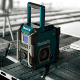 ماکیتا تولید کننده پیشرو ابزارهای برقی حرفه ای در بازار است. MR001GZ یک رادیو محل کار دوگانه است که با باتری های کشویی 10.8 ولت و 12 ولت Max CXT، 14.4 ولت و 18 ولت LXT و 40 ولت Max XGT (شامل نمی شود) یا آداپتور AC سازگار است. MR001GZ مجهز به سیستم استریو 2 بلندگوی جانبی، جک AUX-IN برای اتصال به منبع صوتی خارجی، تیونر دیجیتال AM/FM با صفحه نمایش با نور پس زمینه LCD، با 10 کانال از پیش تنظیم شده (5 صبح و 5 FM)، خواب قابل تنظیم است. (خاموش خودکار) تایمر و کنترل های منو برای تنظیم مونو و استریو FM، تنظیمات ساعت، صدا و چرت زدن. دکمه های کنترل و صفحه کلید برای دید بهتر روشن می شوند. MR001GZ دارای دسته حمل با آنتن FM داخلی، ضربه گیرهای الاستومری و لوله های فلزی برای محافظت در برابر حمل و نقل خشن است و دارای استاندارد IP65 ضد گرد و غبار و دوش است. MR001GZ تا 30 ساعت با باتری 40 ولت مکس لیتیوم یون 4.0 Ah کار می کند (شامل نمی شود). MR001GZ با باتری های سری G سازگار نیست. 1 سال گارانتی سازنده با 2 سال دیگر در صورت ثبت ظرف 30 روز پس از خرید. این ضمانت در مواردی که قطعات یا لوازم جانبی غیر اصل یا توصیه شده روی ابزار نصب شده اند اعمال نمی شود. استفاده از باتری ها و شارژرهای غیر اصل یا سازگار با ابزار ماکیتا، گارانتی ماکیتا برای ابزار ما را باطل می کند.