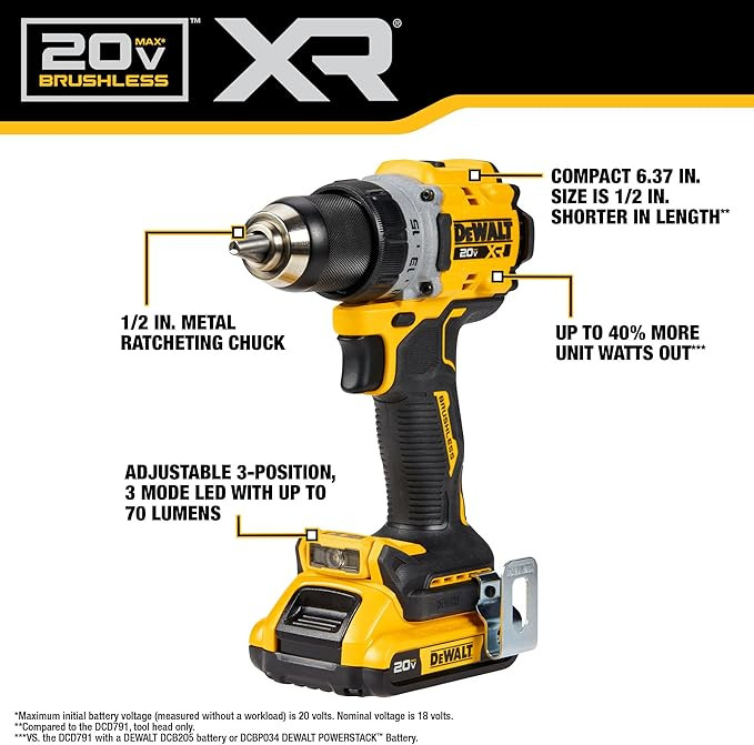 | اجزای شامل | DCD800 20V MAX* XR® Brushless Cordless 1/2 in. Drill/Driver;(2) DCB203 20V MAX* 2Ah Battery;DCB112 Charger;Kit Bag; قلاب کمربند |