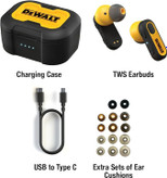 هدفون بلوتوث بیسیم واقعی DEWALT - هدفون بلوتوث TWS - هدفونهای بیسیم با جعبه شارژ نوع C - هدفونهای بیسیم ضد آب - صدای ممتاز Jobsite Pro-X1 برای کار در فضای باز
