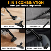 5. ملحقات همه کاره: همراه با سه نازل و برس مجزا، این جاروبرقی تمام نیازهای تمیز کردن شما، از فرش و کف سخت گرفته تا اثاثه یا لوازم داخلی و گوشه های تنگ را برآورده می کند.