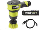RYOBI USB Lithium Compact Scrubber Kit with 2.0 Ah Battery, USB Charging Cord, and 2 in. Medium Bristle Brush, Green