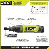 حجم جمع و جور و افزایش قدرت تعویض سریع کلت با 4 برابر تغییرات لوازم جانبی سریع تر که توسط باتری لیتیوم USB RYOBI تغذیه می شود RYOBI ابزار چرخشی لیتیوم USB را معرفی می کند. ابزار چرخشی دارای طراحی فشرده است که قدرت بیشتری را برای هر برنامه ای ارائه می دهد. کلت ابتکاری جدید با تعویض سریع با تغییرات لوازم جانبی 4 برابر سریعتر، که تعویض لوازم جانبی را سریع و آسان می کند. این کیت دارای 15 لوازم جانبی برای کاربردهای مختلف مانند کنده کاری، سنباده زدن، پرداخت و غیره است. USB Lithium Rotary Tool بخشی از سیستم USB Lithium است که راه حل های جمع و جور، قابل حمل و قابل شارژ را برای برق بی سیم و بهره وری ارائه می دهد. این ابزار چرخشی لیتیوم USB توسط گارانتی 2 ساله سازنده RYOBI پشتیبانی می شود و شامل (1) ابزار چرخشی، (1) باتری لیتیوم USB، (15) لوازم جانبی، (1) آچار، (1) جعبه ذخیره لوازم جانبی، (1) کابل USB و دفترچه راهنمای اپراتور است.