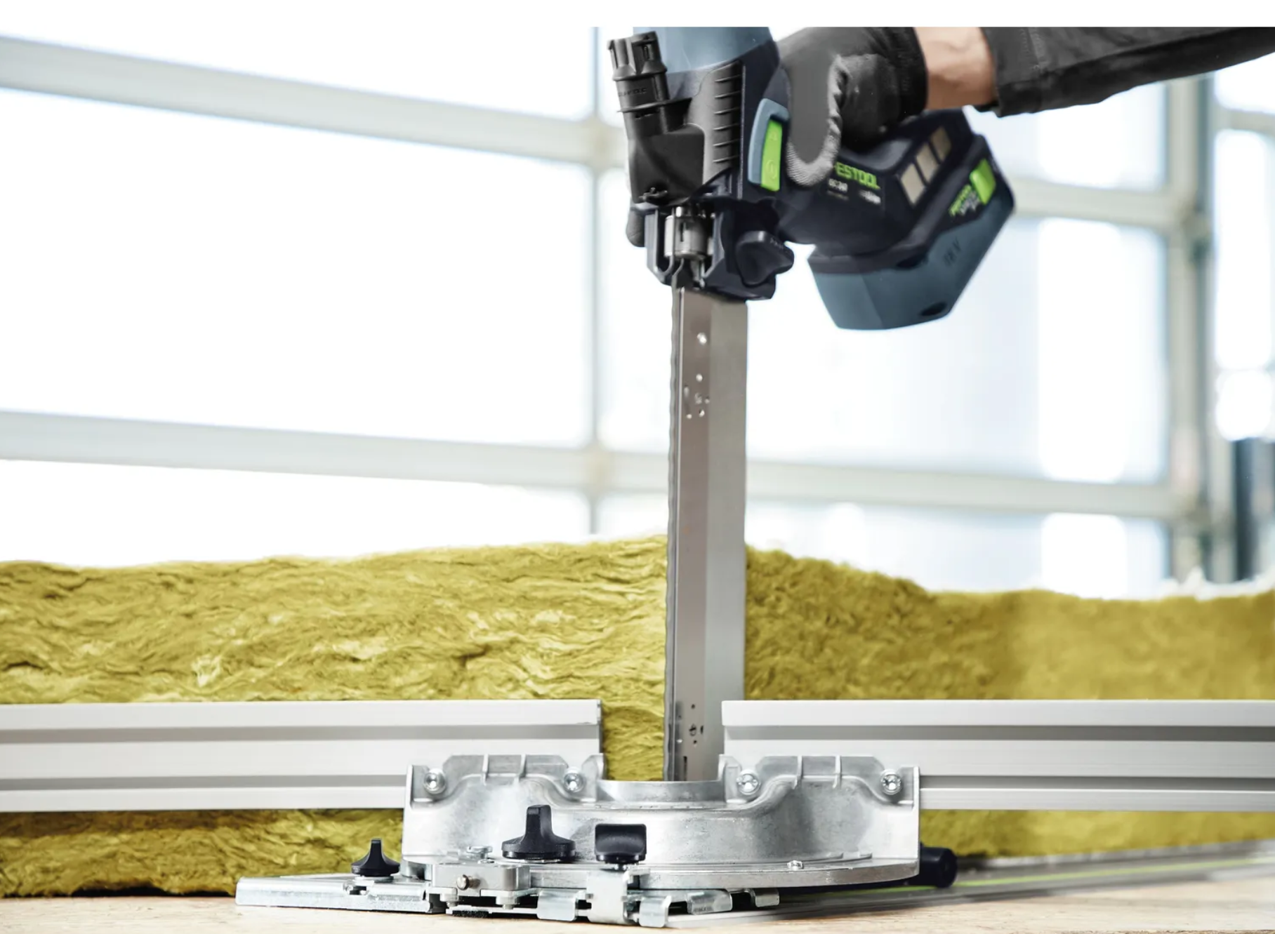 - برای برش مواد عایق انعطافپذیر مانند پشم شیشه، پشم سنگ و الیاف طبیعی (با مجموعه برش تیغه اره دندانهدار)