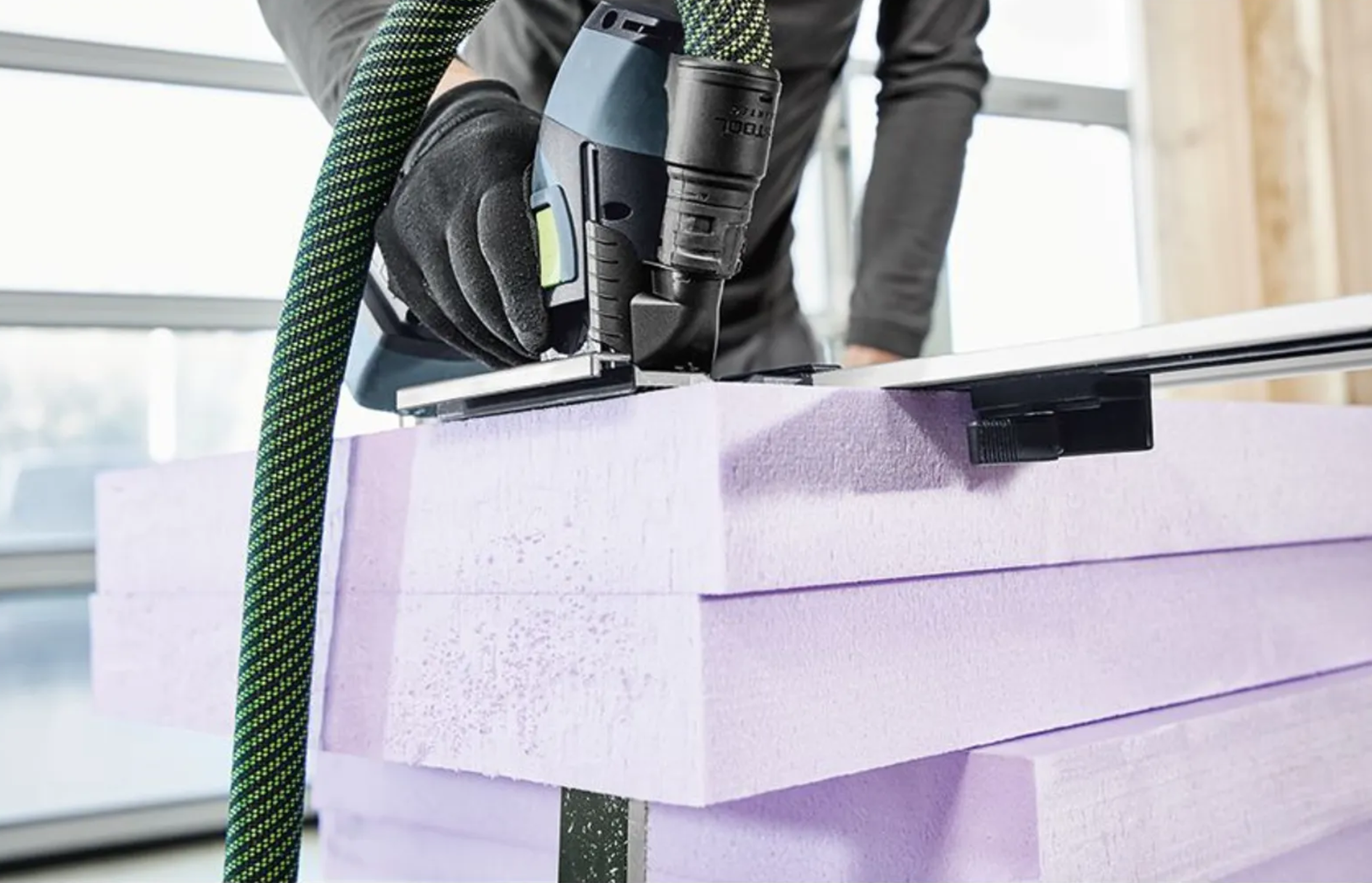 - برش مواد عایق انعطافپذیر با زوایای دقیق و ابعاد دقیق - هنگامی که همراه با ریل راهنما و زاویهسنج FS-WA-ISC استفاده شود